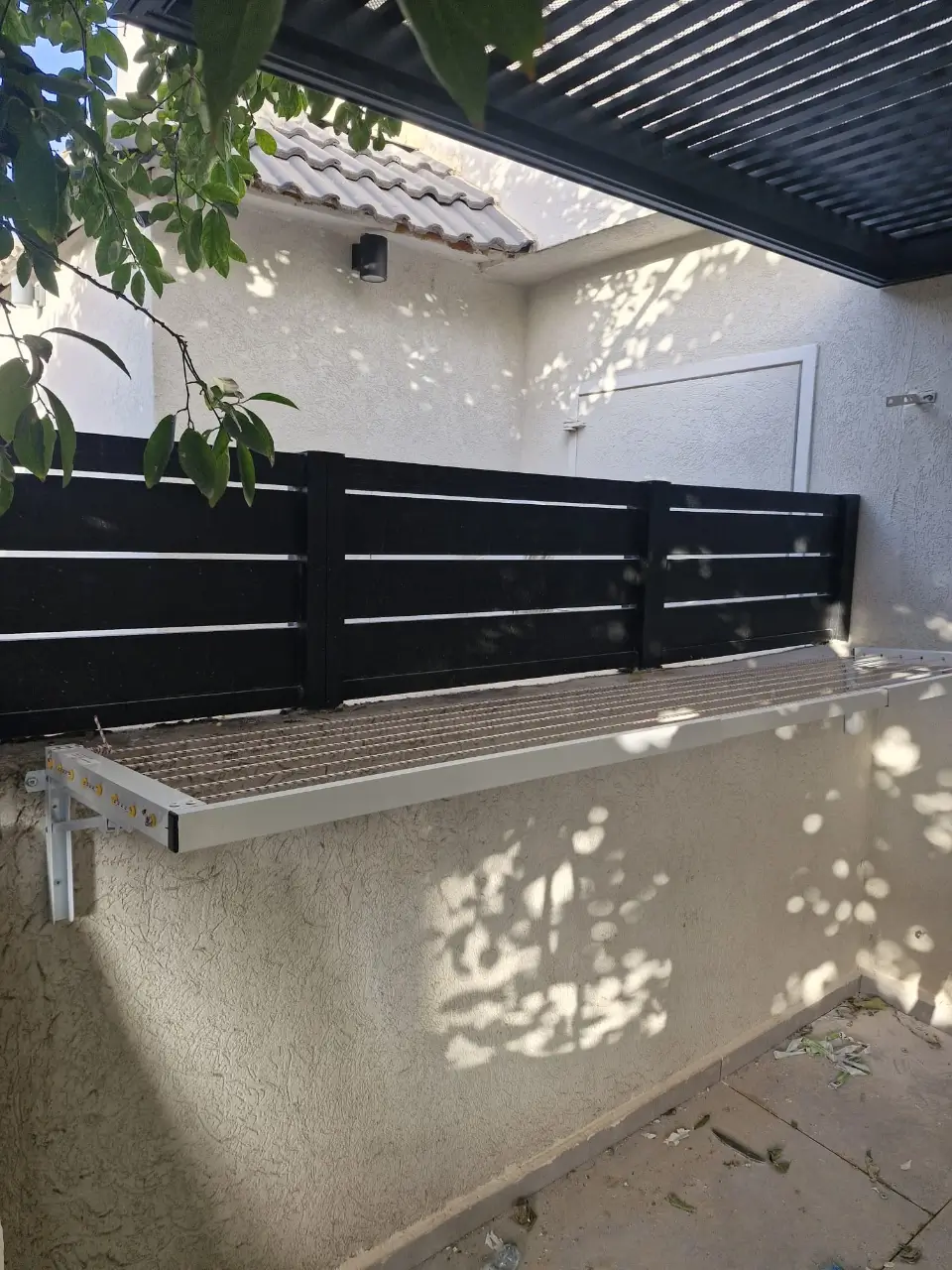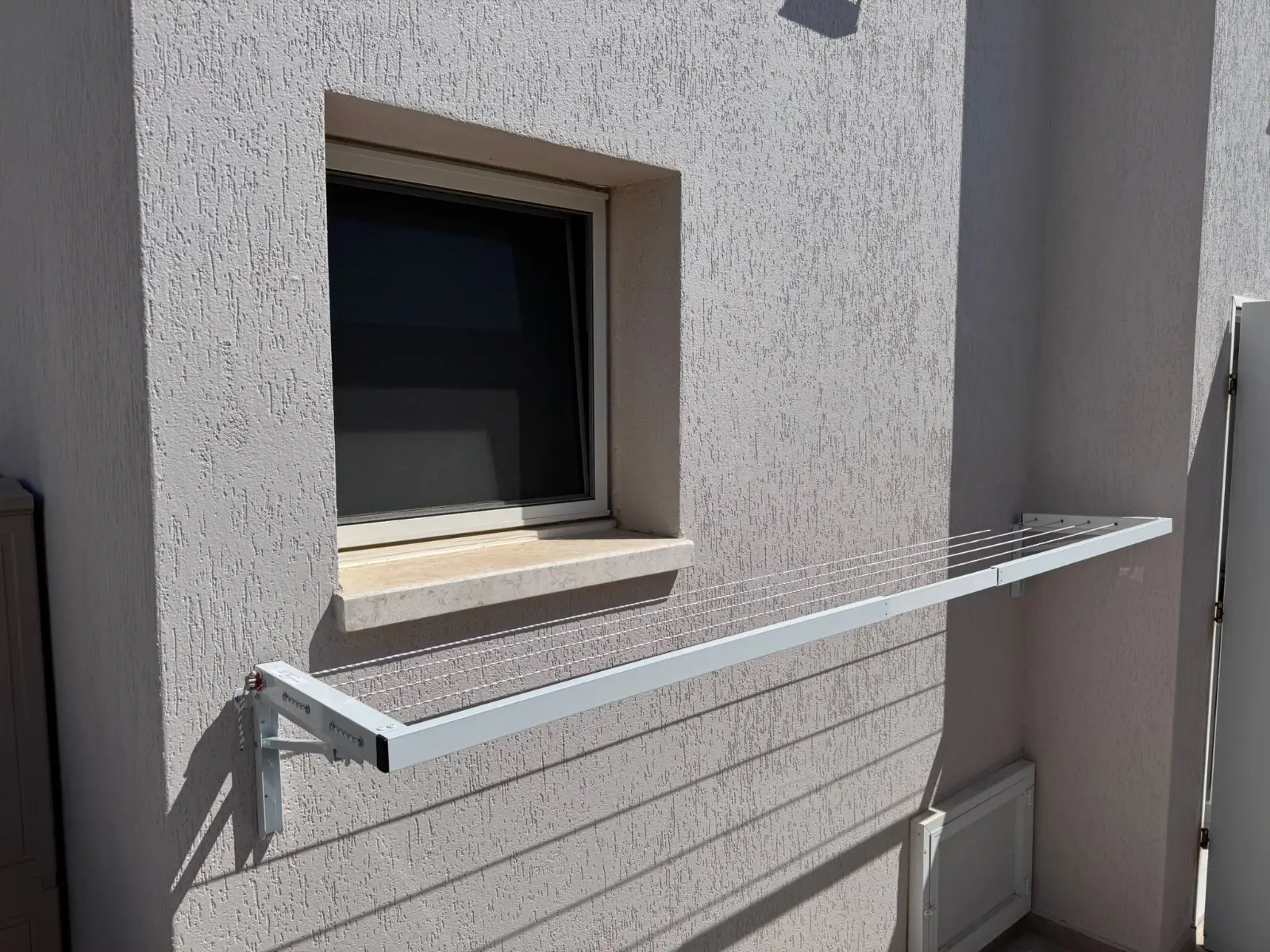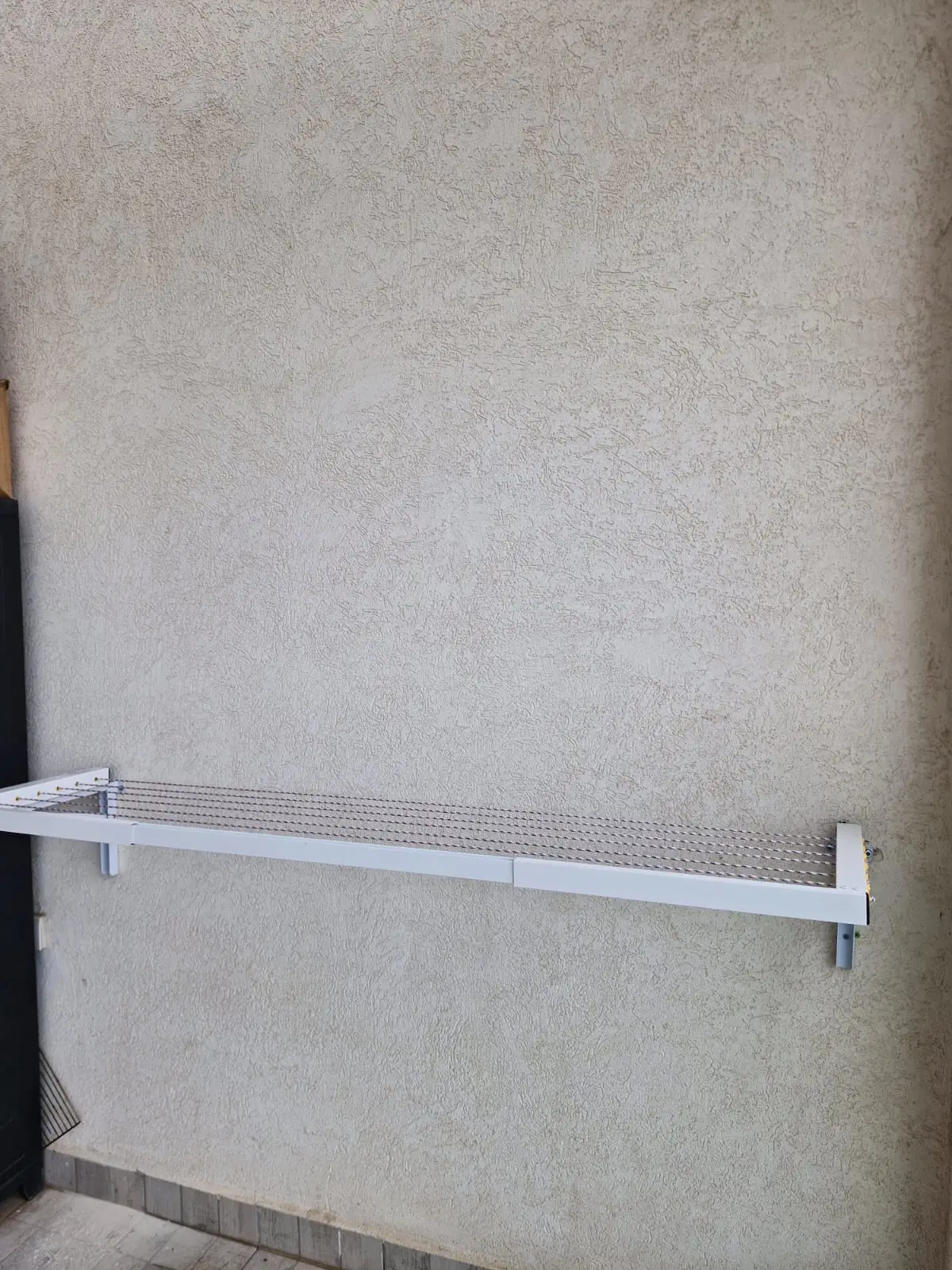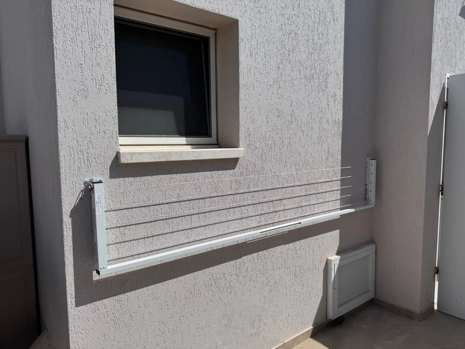 הכירו את פתרון הכביסה האידיאלי למרפסות שמש, חצרות ודירות גג – מתלה נצמד לקיר ומתקפל חזק, נוח, אלגנטי ועמיד במיוחד.